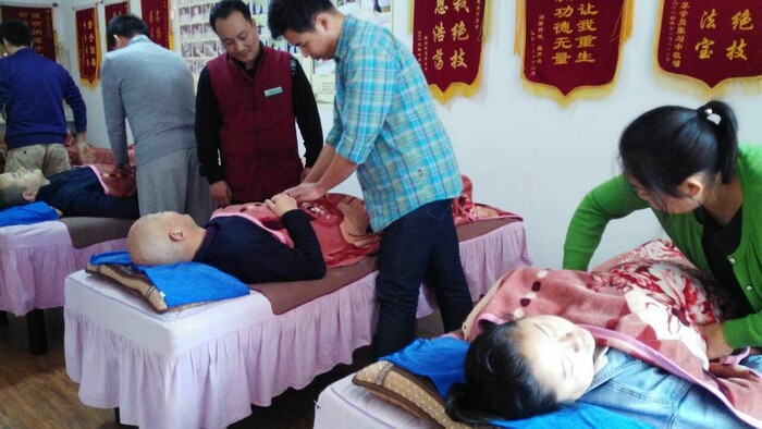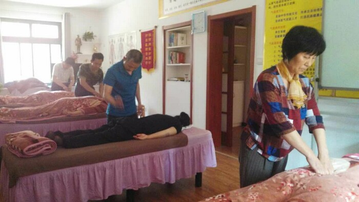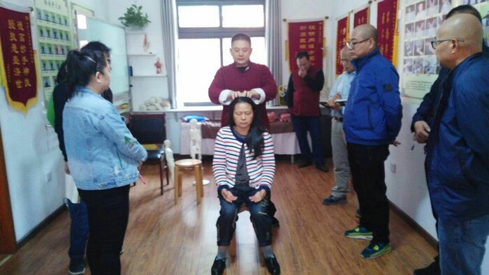 2、形传:老师亲自给学员示范调理手法,手把手传授。