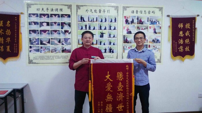 在多年的工作中朱新万老师将医道功法、推拿、点穴、正骨、外气调理、音声布气等传统疗法取其精华,并与道家哲学理念思想完美结合,创立了自成一家的中医调理学派-气能道经络疗法(简称气能道)。